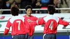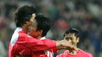 16일 저녁 서울 상암 월드컵경기장에서 벌어진 한국-세르비아 몬테네그로의 친선경기 전반 최진철이 헤딩 선제골을 넣은 뒤 프리킥으로 어시스트한 이을용(가운데)과 포옹하며 서로 격려하고 있다. 이영표도 기뻐하며 달려오고