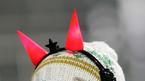16일 저녁 한국-세르비아 몬테네그로의 친선경기가 벌어진 서울 상암 월드컵경기장을 찾은 한 여성팬이 머리에 얹은 빨간 뿔에 불이 들어 와 있다./상암=손용호 기자 spjj@osen.co.kr [Copyright ⓒ OSEN(www.osen.co.kr) 무단전재 및 재배포