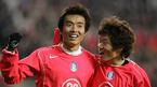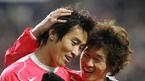 16일 저녁 서울 상암 월드컵경기장에서 벌어진 한국-세르비아 몬테네그로의 친선경기 후반 이동국이 2-0을 만드는 오른발 중거리슛을 성공시킨 뒤 박지성(오른쪽)과 함께 기뻐하고 있다./상암=손용호 기자spjj@osen.co.kr [Copyright ⓒ