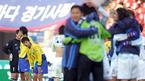 성남종합운동장에서 20일 열린 성남 일화와 울산 현대의 플레이오프서 2-1 승리로 결승에 진출하게된 울산 현대 선수들은 기뻐하는 반면 뒤편에 있는 성남 일화 선수들은 아쉬워 하며 부럽게 쳐다보고 있다./성남=주지영 기자 jj