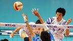 프로배구 KT&G 2005-2006 V-리그가 3일 대전 천안 구미에서 개막됐다. 대전 충무체육관서 벌어진 대전 삼성화재 블루팡스와 인천 대한항공 점보스의 경기서 삼성화재의 김상우가 중앙 속공을 시도했으나 상대의 블로킹에 걸려 실패