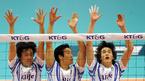 프로배구 KT&G 2005-2006 V-리그가 3일 대전 천안 구미에서 개막됐다. 대전 충무체육관서 벌어진 KT&G와 GS칼텍스의 여자부 경기서 3-1로 이긴 KT&G 선수들이 기뻐하고 있다./대전=주지영 기자 jj0jj0@ [Copyright ⓒ OSEN(www.osen.co.kr) 무단전재