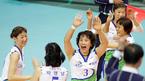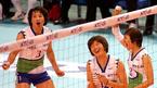 프로배구 KT&G 2005-2006 V-리그가 3일 대전 천안 구미에서 개막됐다. 대전 충무체육관서 벌어진 KT&G와 GS칼텍스의 여자부 경기서 3-1로 승리한 KT&G의 최광희(왼쪽)가 동료들과 기뻐하고 있다. 김형실 감독이 코트 쪽으로 나오며 박수