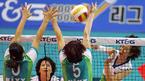 프로배구 KT&G 2005-2006 V-리그가 3일 대전 천안 구미에서 개막됐다. 대전 충무체육관서 벌어진 KT&G와 GS칼텍스의 여자부 경기서 KT&G의 '왕언니' 최광희(31)가 GS칼텍스의 우형순과 나혜원이 더블 블로킹으로 붙자 연타로 볼을 넘기고