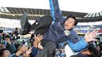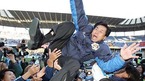 4일 울산 문수 월드컵경기장에서 벌어진 2005 삼성 하우젠리그 챔피언 결정전 2차전을 끝으로 우승을 확정지은 울산 선수들이 김정남 가독을 헹가래 치고 있다. 김정남 감독은 개인적으로 89년 유공 감독 시절 이후 16년만에 정상