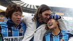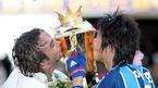 4일 울산 문수 월드컵경기장에서 벌어진 2005 삼성 하우젠리그 챔피언 결정전 2차전을 끝으로 시즌 우승을 차지한 울산의 마차도와 이호가 우승컵에 키스하고 있다./울산=손용호 기자 spjj@ [Copyright ⓒ OSEN(www.osen.co.kr) 무단전재 및