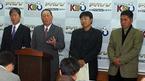 야구월드컵 코칭스태프 첫 회의가 5일 오전 서울 도곡동 야구회관에서 열렸다. 선동렬 삼성 감독이 개인 사정으로 빠진 가운데 회의를 마친 대표팀 사령탑 김인식 한화 감독(왼쪽), 김재박 현대 감독, 조범현 SK 감독, 유중일 삼
