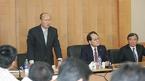 야구월드컵 코칭스태프 첫 회의가 5일 오전 서울 도곡동 야구회관에서 열렸다. 선동렬 삼성 감독이 개인 사정으로 빠진 가운데 회의를 마친 대표팀 사령탑인 김인식 한화 감독(왼쪽에서 두 번째)이 삼성 유중일 코치, 현대 김재