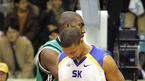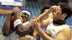 7일 잠실학생체육관에서 벌어진 2005~2005 KCC 프로농구 서울 SK 나이츠와 원주 동부 프로미의 경기서 SK의 데이먼 브라운(왼쪽)이 루스볼을 잡으려다 광고판 뒤로 거꾸로 쳐박히자 관중들이 웃고 있다. 동부 선수들은 쳐다볼 필요도