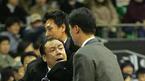 7일 잠실학생체육관에서 벌어진 2005~2005 KCC 프로농구 서울 SK 나이츠와 원주 동부 프로미의 경기서 SK 김태환 감독이 코트 안으로 들어와 심판에게 항의하는 모습을 동부 전창진 감독(왼쪽)이 바라보고 있다./잠실학생체=주지영