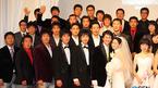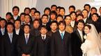 LG의 '쿨 가이' 박용택(26)이 10일 저녁 서울 삼성동 그랜드 콘티넨탈 호텔에서 동갑나기 한진영 씨와 결혼식을 올렸다. 친지들 기념 촬영서 신랑 신부 바로 뒤에 선 LG 이승호(왼쪽)와 유택현이 서로 마주보며 웃고 있다./주지영 기