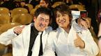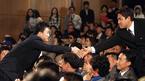 11일 오후 서울 삼성동 코엑스 오디토리움에서 벌어진 삼성PAVV 프로야구 2005 골든글러브 시상식에서 지명타자 부문 수상자로 SK의 김재현이 호명되자 경쟁자였던 삼성의 양준혁(오른쪽)이 축하 안수를 건네고 있다./손용호 기자