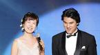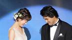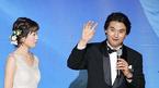 샌디에이고 파드리스의 박찬호가 11일 낮 서울 소공동 롯데호텔에서 결혼식 피로연을 겸한 통산 100승 사은회를 였었다. 박찬호 부부가 무대에서 밝게 웃고 있다./손용호 기자 spjj@osen.co.kr [Copyright ⓒ OSEN(www.osen.co.kr) 무단전재 및