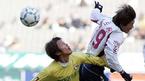 14일 서울 상암 월드컵경기장에서 벌어진 2005 하나은행 FA컵 4강전 전남 드래곤즈와 울산 현대미포조선의 경기 전반 현대미포조선의 골키퍼 양지원이 문전에서 전남 노병준을 페인팅 모션으로 제치고 있다./상암=손용호 기자 spjj