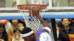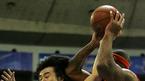 15일 잠실학생체육관에서 벌어진 2005~2006 KCC 프로농구 서울 SK 나이츠와 부산 KTF 매직윙스의 경기서 리바운드를 위해 KTF 딕슨(오른쪽)과 SK 주니어 버로가 나란히 점프했으나 볼은 림 안으로 들어가고 있다./잠실학생체=주지영 기