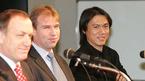 18일 유럽으로 떠나는 딕 아드보카트 국가대표팀 감독이 코칭스태프와 함께 17일 서울 상암 월드컵경기장에서 송년 기자회견을 가졌다. 회견 도중 아드보카트 감독과 베어벡, 홍명보 코치가 웃고 있다./손용호 기자 spjj@osen.co.kr