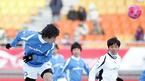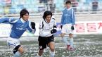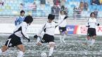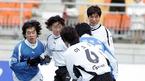 홍명보 장학재단이 주최하는 2005 푸마 자선축구 경기가 18일 오후 수원 월드컵경기장에서 열렸다. 전 국가대표 중심의 사랑팀(흰색 상의)과 현 대표 위주의 희망팀(푸른색 상의)이 눈밭이 된 그라운드에서 경기를 벌이고 있다./