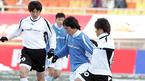 홍명보 장학재단이 주최하는 2005 푸마 자선축구 경기가 전 국가대표 중심의 사랑팀(흰색 상의)과 현 대표 위주의 희망팀(푸른색 상의)으로 나뉘어 18일 오후 수원 월드컵경기장에서 열렸다. 사랑팀의 서정원과 희망팀의 김동진