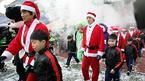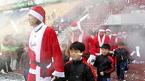 홍명보 장학재단이 주최하는 2005 푸마 자선축구 경기가 18일 오후 수원 월드컵경기장에서 열렸다. 2002년 월드컵 멤버들 중심의 사랑팀과 현 대표 선수 위주의 희망팀으로 나뉘어 벌인 경기에 앞서 선수들이 산타클로스 복장으