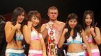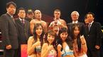 코마 헤비급 그랑프리 파이널 대회가 22일 서울 장충체육관에서 벌어졌다. 준결승서 이면주를 KO로 눕히고결승에 올라온 니무라 유키를 꺾고 챔피언에 오른 폴 '스팅' 슬로윈스키가 코마걸들과 포즈를 취하고 있다./장충체=주지