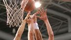 24일 안양체육관에서 벌어진 2005~2006 KCC 프로농구 안양 KT&G와 부산 KTF의 경기 4쿼터서 KTF의 나이젤 딕슨이 KT&G 허브 래미쟈나(왼쪽) 앞에서 훅슛을 던지고 있다. 래미쟈나가 점프하며 볼을 쳐냈지만 심판이 골로 판정했다. /안양=
