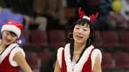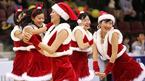 24일 안양체육관에서 벌어진 2005~2006 KCC 프로농구 안양 KT&G와 부산 KTF의 경기 작전 타임 때 산타클로스 컨셉의 복장을 한 치어리더들이 흥겨운 율동으로 크리스마스 이브에 경기장을 찾은 관중을 즐겁게 해주고 있다. /안양=손용