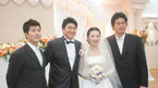 서재응이 25일 낮 광주 상무지구 에벌루션 웨딩컨벤션에서 이주현 씨와 '지각' 결혼식을 올렸다. 서재응 부부가 김병현 최희섭과 기념촬영하고 있다./광주=주지영 기자 jj0jj0@osen.co.kr [Copyright ⓒ 한국 최고의 스포츠 전문 미디어