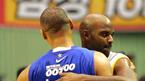 26일 잠실체육관에서 벌어진 2005~2006 KCC 프로농구 삼성 썬더스와 SK 나이츠의 서울 라이벌전에서 110-97로 승리한 삼성의 네이트 존슨(오른쪽)이 SK의 주니어 버로와 포옹하며 인사를 나누고 있다./잠실체=주지영 기자 jj0jj0@osen.co.kr