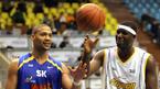 26일 잠실체육관에서 벌어진 2005~2006 KCC 프로농구 삼성 썬더스와 SK 나이츠의 서울 라이벌전에서 삼성의 올루미데 오예데지가 SK 주니어 버로를 제치며 골밑슛을 성공시키고 있다. 버로가 오예데지의 왼손에 얼굴을 맞으며 인상