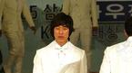 2005 삼성 하우젠 K리그 대상 시상식이 28일 오후 서울 홍은동 그랜드 힐튼호델 컨벤션룸에서 열렸다. 박주영이 앙드레 김이 디자인한 옷을 입고 패션쇼 예행연습을 하고 있다. /손용호 기자 spjj@osen.co.lkr [Copyright ⓒ 한국 최고의
