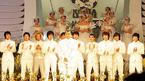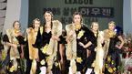 2005 삼성 하우젠 K리그 대상 시상식이 28일 오후 서울 홍은동 그랜드 힐튼호델 컨벤션룸에서 열렸다. 베스트11에 뽑힌 선수들이 여성 패션 모델들과 함께 앙드레 김이 디자인한 옷을 입고 패션쇼 예행연습을 하고 있다./손용호 기