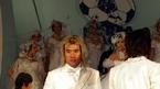 2005 삼성 하우젠 K리그 대상 시상식이 28일 오후 서울 홍은동 그랜드 힐튼호델 컨벤션룸에서 열렸다. 김병지가 지난해에 이어 또 앙드레 김이 디자인한 옷을 입고 패션쇼 예행연습을 하고 있다./손용호 기자spjj@osen.co.lkr [Copyright