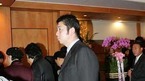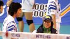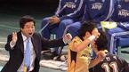 8일 KT&G 2005~2006 V리그 대전 삼성화재와 천안 현대캐피탈의 경기가 벌어진 대전 충무체육관을 찾은 프로축구 대전 시티즌의 간판 스타 이관우(오른쪽)가 경기에 앞서 팬들에게 사인볼을 선사하기 위해 코트로 내려와 한양대 선