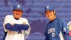 한국야구위원회는 9일 오후 서울 잠실 롯데월드호텔서 오는 3월 일본 도쿄돔에서 벌어지는 WBC 1라운드에 출전할 한국대표팀 오리엔테이션 및 미디어데이 행사를 가졌다. 후공 유니폼을 입은 서재응(왼쪽)이 선공 유니폼을 입은