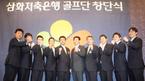 삼화저축은행(회장 신삼길)이 남자 프로골프 유망주들을 대거 영입, 10일 서울 논현동 임페리얼 팰리스호텔에서 골프단 창단식을 가졌다. 신삼길 구단주, 박재영 단장, 김형신 감독, 배성재 주무가 선수들과 함께 기념 사진을 찍