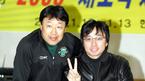 12일 저녁 고양의 현대 유니콘스 원당 구장에서 '2006 새도약 새마음 결의대회'가 열렸다. 현대 선수들에게 특별 강의를 마친 전 클론 멤버 강원래가 김재박 감독과 포즈를 취하고 있다./고양=주지영 기자 jj0jj0@osen.co.kr [Copyright ⓒ
