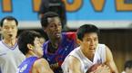18일 전주체육관에서 열린 2005~2006 KCC 프로농구 전주 KCC와 울산 모비스의 경기에서 KCC 민렌드의 골밑슛을 모비스의 핸드로그텐(오른쪽)이 쳐내고 있다./전주=박영태 기자 ds3fan@osen.co.kr [Copyright ⓒ 한국 최고의 스포츠 전문 미디어