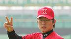기아 타이거즈가 17일 오후 광주 무등경기장에서 신인 및 배번이 변경된 선수들의 포토데이 행사를 가졌다. 프로야구 사상 최고액인 10억 원의 계약금을 받고 입단한 한기주가 손으로 V자를 그려 보이고 있다./광주=박영태 기자