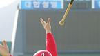 모자의 로고를 바꾼 한화 이글스가 19일 대전 한밭운동장에서 포토데이 행사를 가졌다. 한화의 슬러거 김태균이 홈런을 날린 후 배트를 내던지는 세리머니를 연출해 보이고 있다./대전=박영태 기자 ds3fan@osen.co.kr [Copyright ⓒ 한국