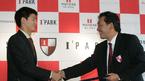 북한대표 출신 안영학이 22일 오전 서울 대치동 파크 하얏트호텔에서 부산 아이파크 입단식을 가졌다. 안영학이 입단 계약서에 사인한 뒤 이준하 부산 아이파크 사장과 악수를 나누고 있다./박영태 기자 ds3fan@osen.co.kr [Copyright ⓒ