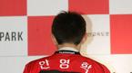 북한대표 출신 안영학이 22일 오전 서울 대치동 파크 하얏트호텔에서 부산 아이파크 입단식을 가졌다. 안영학이 입단 계약서에 사인한 뒤 부산 유니폼을 입고 돌아서서 배번 17번을 보여주고 있다./박영태 기자 ds3fan@osen.co.kr [Cop