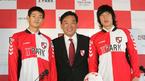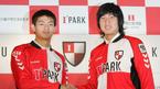 일본 나고야 그램퍼스 에이트에서 활약하던 북한대표 출신 미드필더 안영학이 22일 오전 서울 대치동 파크 하얏트 호텔에서 청소년대표를 역임한 도쿄 베르디 출신 수비수 이강진과 함께 부산 아이파크 입단식을 가졌다. 안영