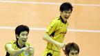 30일 서울 올림픽공원 펜싱경기장에서 벌어진 KT&G 2005-2006 V-리그 천안 현대캐피탈 스카이워커스와 대전 삼성화재 블루팡스의 경기서 현대캐피탈이 0-2를 뒤집고 대역전승을 거뒀다. 후인정(왼쪽)과 권영민(오른쪽)이 공격을 성공