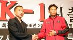 프로복싱 세계챔피언 출신 최용수가 7일 오후 서울 신라호텔에서 K-1진출 기자회견을 가졌다. 최용수가 전속 계약을 맺은 TMG의 양명규 대표이사와 악수를 나누고 있다./주지영 기자 jj0jj0@osen.co.kr [Copyright ⓒ 한국 최고의 스포츠