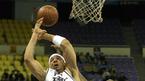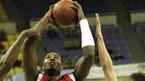9일 부천체육관에서 열린 2005-2006 KCC 프로농구 인천 전자랜드와 창원 LG의 경기에서 LG의 드미트리우스 알렉산더가 전자랜드 안드레 브라운의 골밑슛을 블로킹하고 있다. 점프해 있는 브라운의 오른쪽 정강이에 문신이 많이 새