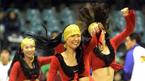 10일 잠실학생체육관에서 벌어진 2005~2006 KCC 프로농구 서울 SK와 서울 삼성의 라이벌전서 최근 무서운 상승세를 타고 있는 SK가 101-91로 역전승을 거두었다. SK 치어리더들이 흥겨운 율동을 선보이고 있다./잠실학생체=손용호 기자