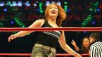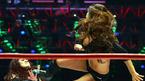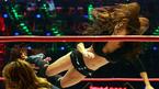 경기도 광명 경륜돔에서 10일 열린 IMPACT 2006 월드 레슬링 챔피언쉽 여자 태그팀 매치에서 한국계 여성 레슬러 게일 김이 마유미 오자키를 쓰러뜨리자 마자 미즈 제넷에게 몸을 날려 공격하고 있다. /광명 경륜돔=주지영 기자 jj0j