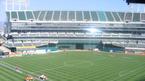 12일(한국시간) 미국 프로야구 메이저리그 오클랜드 애슬레틱스의 홈 구장인 매카피 칼러시엄 내외야 그라운드에 한국과 코스타리카의 평가전을 위해 축구장 규격의 라인과 골대가 설치돼 있다./오클랜드=김영준 특파원 sgoi@ose
