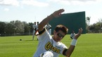 미국 플로리다 브래든턴의 피츠버그 파이어리츠 스프링캠프서 전지훈련 중인 현대 유니콘스 야수들이 부상 방지를 위해서 스파이크를 벗은 채 맨발로 부담없이 슬라이딩 훈련을 실시하고 있다./현대 유니콘스 제공 [Copyright ⓒ