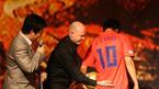 13일 오후 서울 삼성동 코엑스 아셈타워 그랜드 볼룸에서 열린 2006 국가대표 축구팀 유니폼 발표회가 열렸다. 새 유니폼이 발표된 뒤 김주성 대한축구협회 국제부장(오른쪽)이 사회자와 이야기를 나누고 있다./박영태 기자 ds3fan
